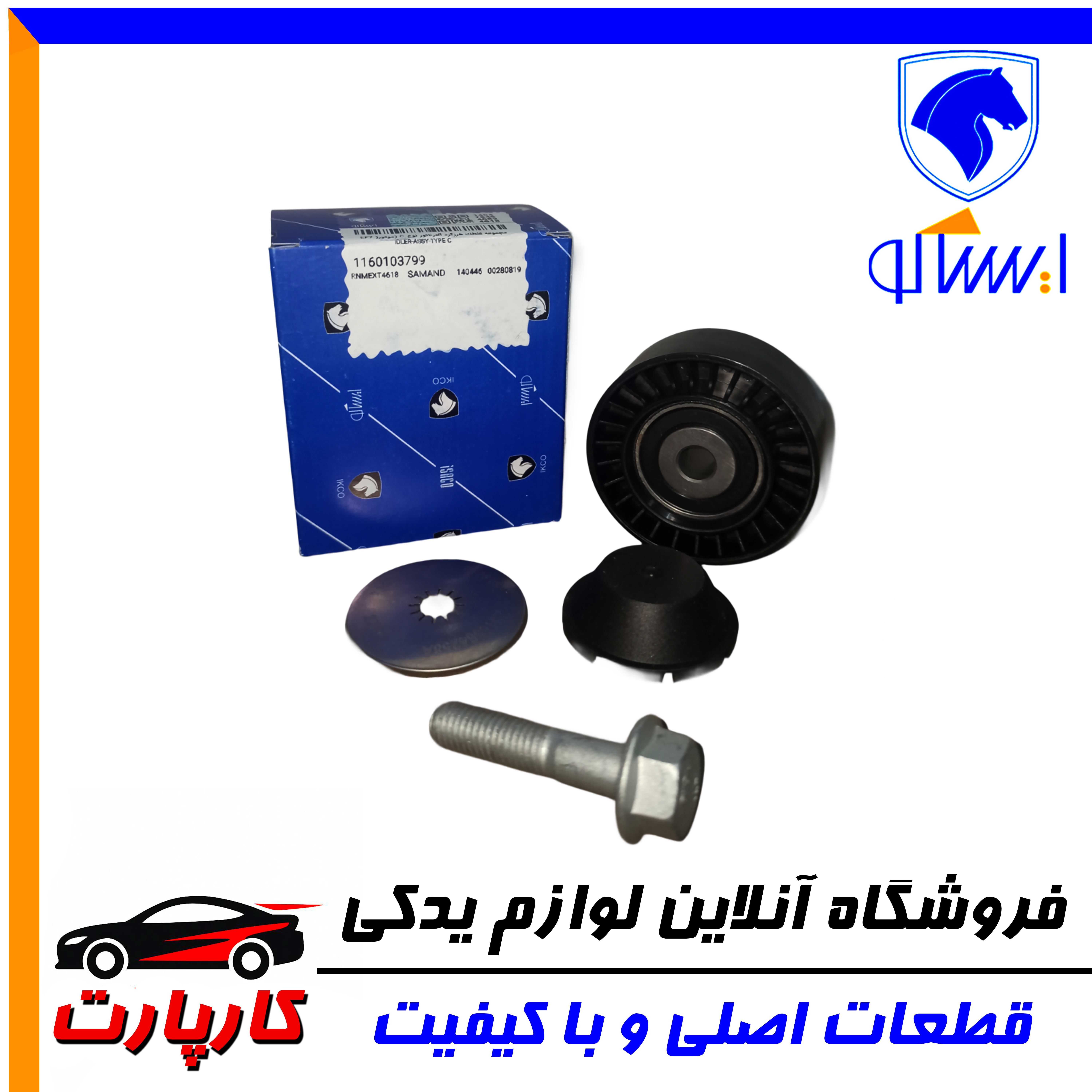غلتک ایساکو 405 و پارس تسمه سفت کن وهرزگرد ثابت تسمه آلترناتورXU7 - XU7P با پیچ و بوشناموجود